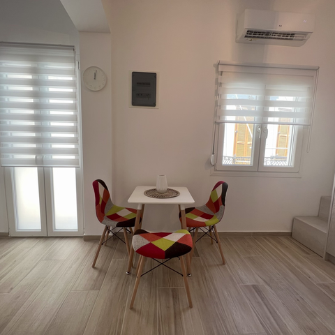 Nest is 22 square meters, located on the second floor of the building at side road Lykoudis. It can accommodate up to two people, it has a raised double bed, an office and a fully equipped kitchen. A bathroom with a waterfall shower as well as a balcony overlooking the courtyard. Is accessible by stairs.